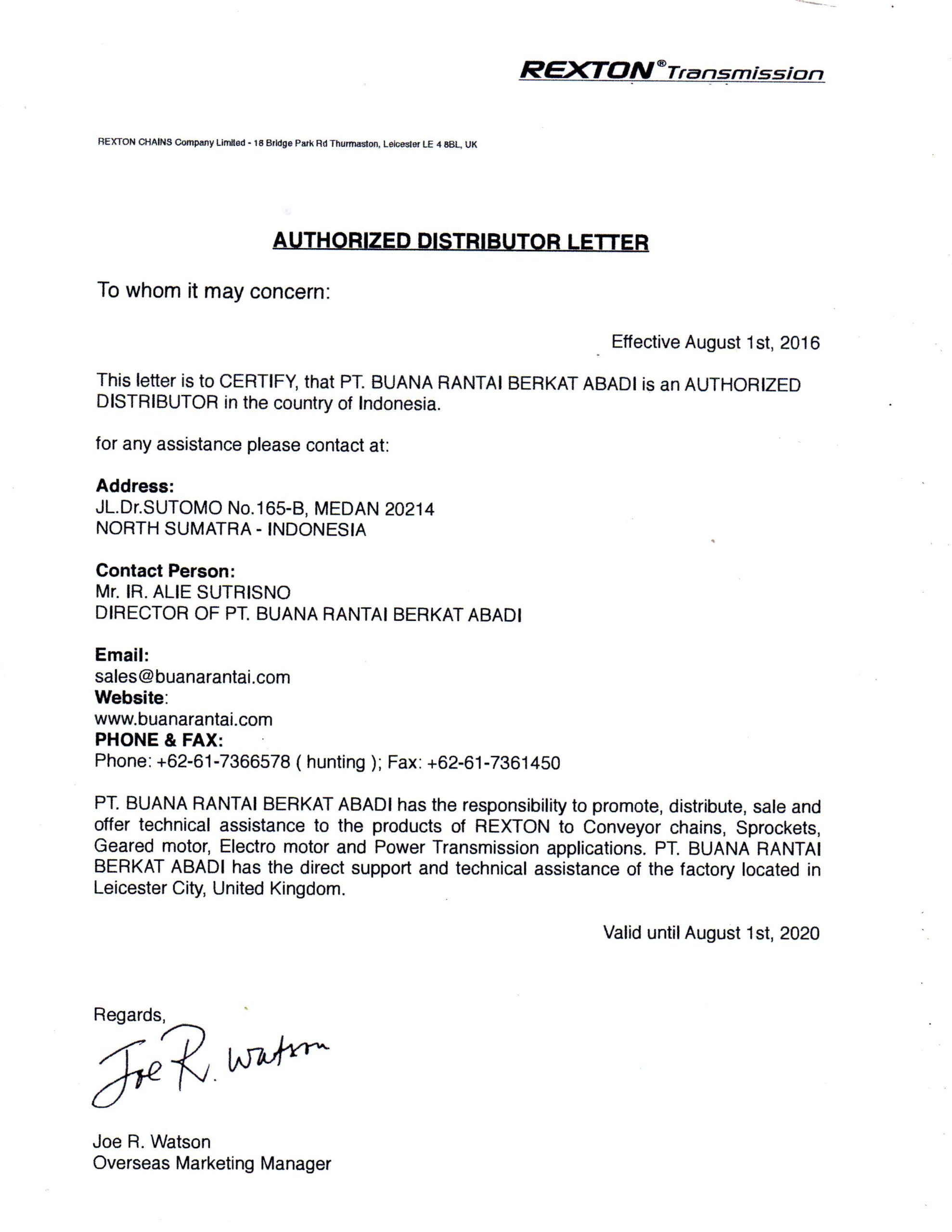 | Authorized Distributor Letter |